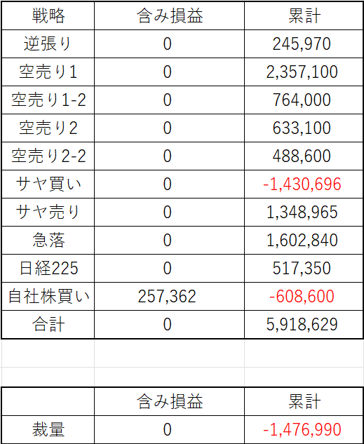 その後、空売り1が失速するも空売り2がコツコツ稼いでカバーする流れでした。