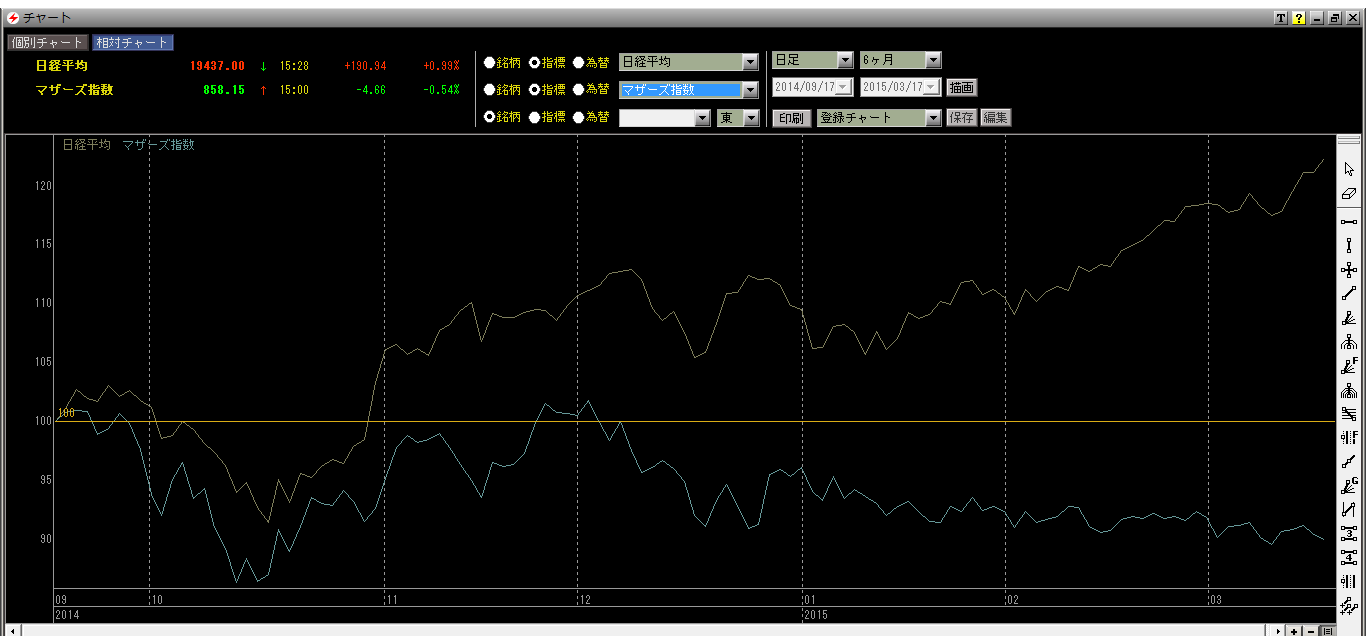 連日の年初来高値更新ですね。一方でマザーズは・・・(^^;)