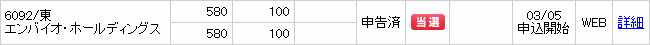 さて今日はIPO銘柄4246ダイキョーニシカワ、6092エンバイオ・ホールディングスの抽選結果が発表されました。