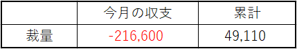 ※先月の集計にミスがあったようで、今月の収支に若干ズレがあります。