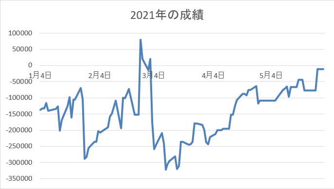 ただトレードそのものの成績はまずまずでプラ転も見えてきました。2021年は5ヶ月が経ちましたが、戦略ごとの累計額もシストレ全体の累計額も±30000円ちょっとで収まっているのは奇妙な感じです(^^;)