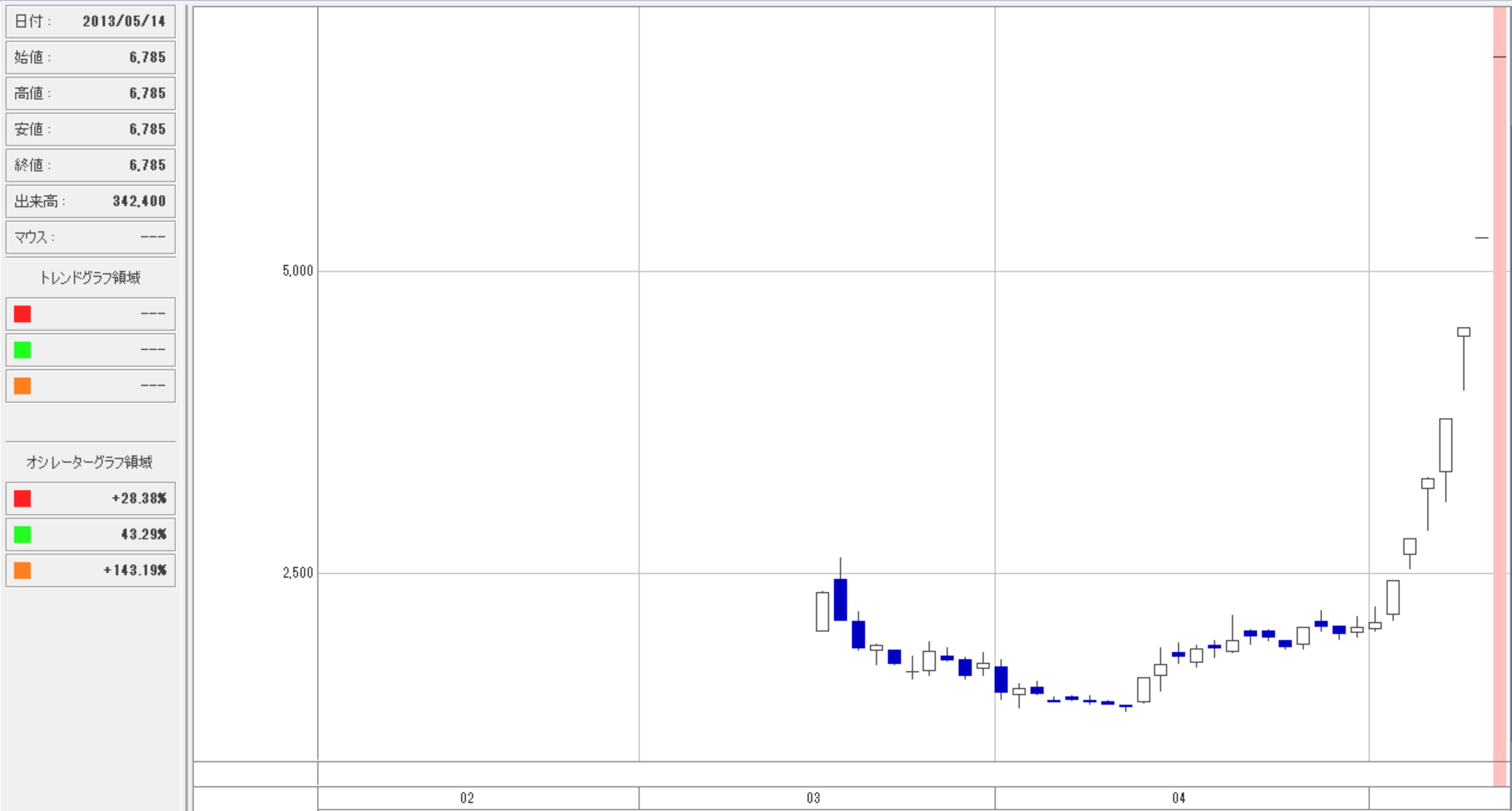 初値が4015円をつけ、1ヶ月もしないうちに2786円まで低迷した株価が、さらに1ヶ月後ソーシャルゲーム関連という肩書だけで13570円まで達していました。