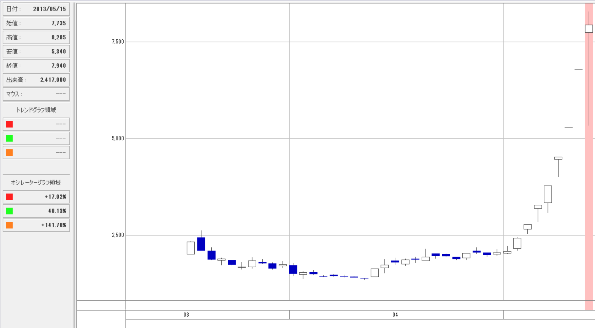説明不要なぐらい大ヒットになったわけですが、それは株式市場でも連日大変な大盛り上がりを見せました。最初は収益性に疑問があったようですが、2013年の第一四半期決算の営業利益が前年同期比で7383.9%ととんでもない数字を出し確信に変わるとこの前後からバブルが起こります。