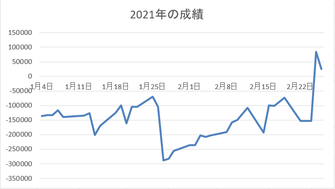 逆張りは、安定的に利益を出してくれました。最終日前日に保有していたポジションが、前述の下げを食らい損失となったものの今月のグラフの右肩上りを形成した立役者となりました。