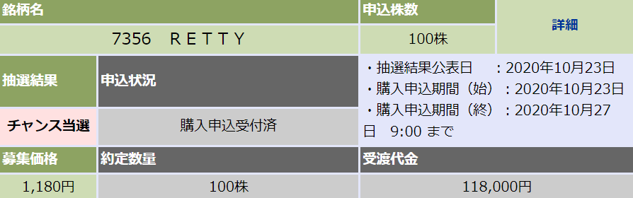 ただここである事に気づきます。現時点で「繰上げならず」になってない事はおそらく繰上げ当選になってたとしてそれが何株なのか?その日は時間を空けて何度かログインしてみたものの表記は変わらずじまいでした。