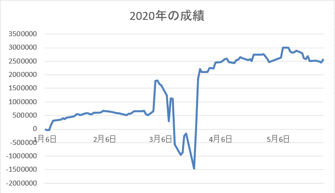 トータルで微負けでしたが5月の中旬までは絶好調で、累計収支も300万円を超え、内心今月は勝ったなと思ってました。ところが5/18週の相場で空売りがそれまでの利益を吐き出してしまいました。そうなるとこういう相場で活躍を期待していた順張りでしたが、最後に上クラスの銘柄をゲットしてぎりぎりプラ転がやっとでした。