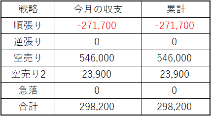 トレードは、空売り戦略がことごとくハマり、大きな利益を稼いでくれました。