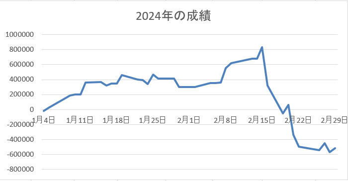 2月中旬までは堅調でしたが、2週間で利益を吐き出すどころかマイ転してしまいました。